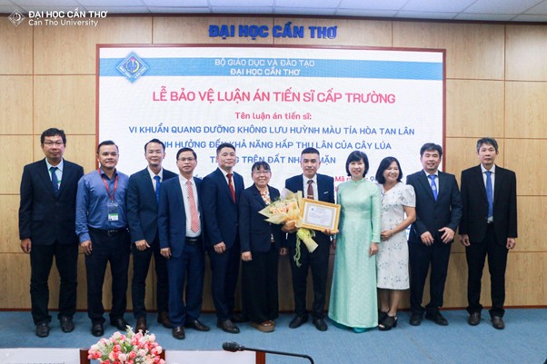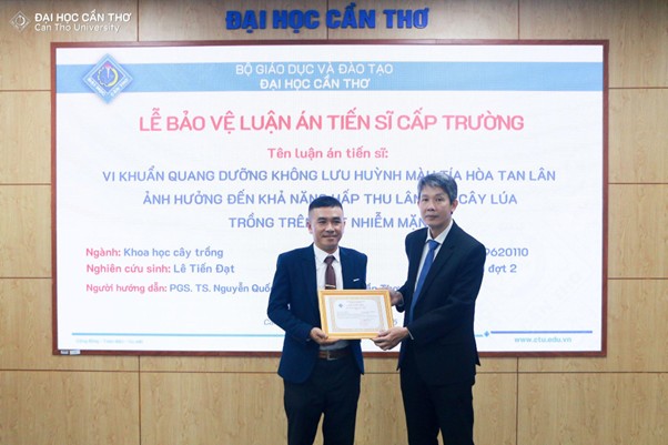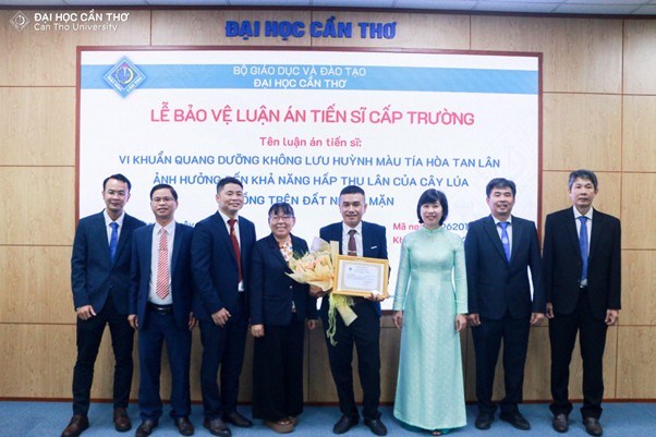 Ngày 22/11/2025, Đại học Cần Thơ đã tổ chức buổi bảo vệ luận án tiến sĩ cho nghiên cứu sinh (NCS) Lê Tiến Đạt, khóa 2021, ngành Khoa học cây trồng với đề tài “Vi khuẩn quang dưỡng không lưu huỳnh màu tía hòa tan lân ảnh hưởng đến khả năng hấp thu lân của cây lúa trồng trên đất nhiễm mặn”. Luận án do PGS.TS. Nguyễn Quốc Khương hướng dẫn.