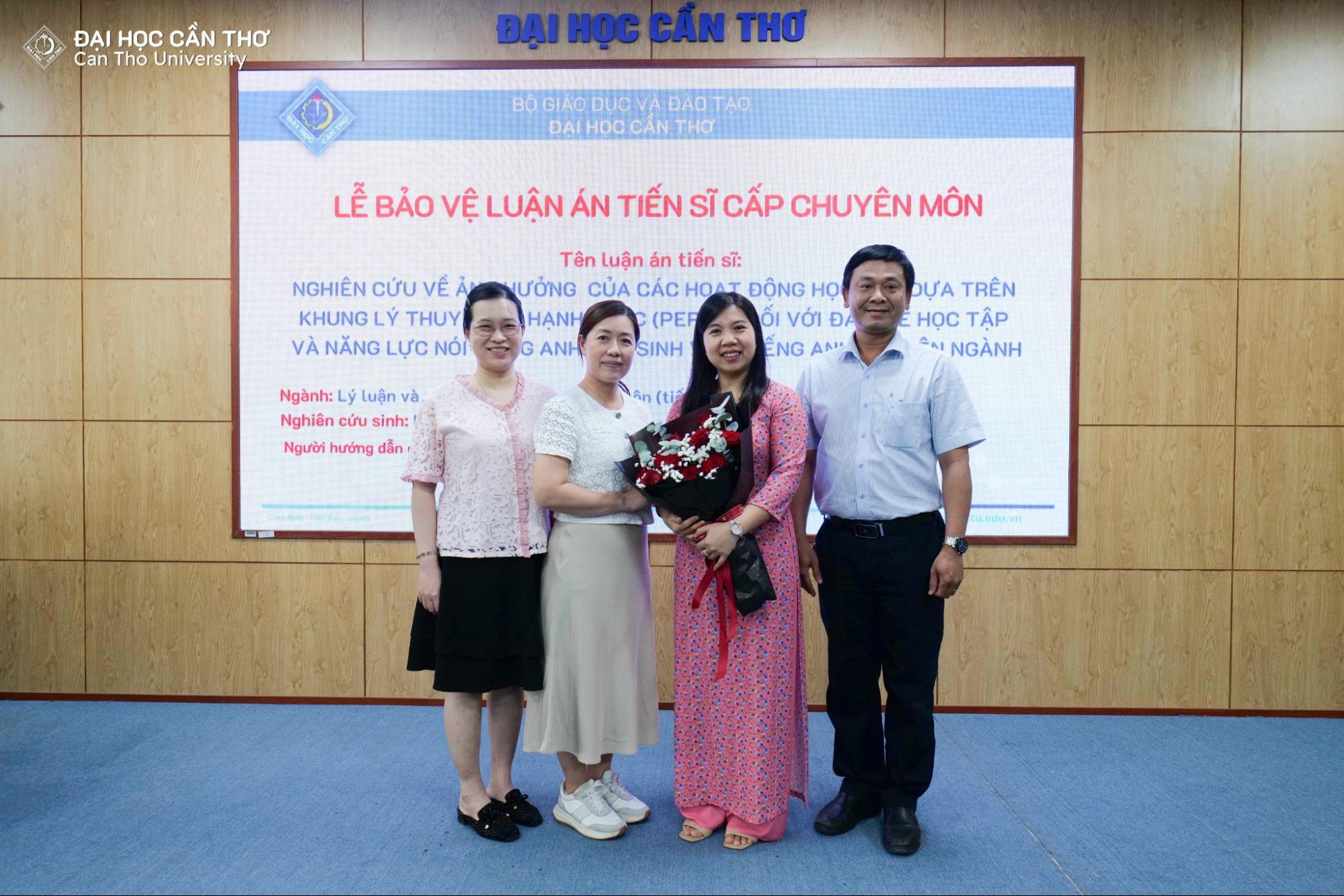 Ngày 24/3/2026, Đại học Cần Thơ đã tổ chức buổi bảo vệ Luận án tiến sĩ cấp đơn vị chuyên môn cho nghiên cứu sinh Lý Thị Trà My với sự tham dự của hội đồng đánh giá luận án, các nhà khoa học, giảng viên và nghiên cứu sinh. Đây là nghiên cứu sinh đầu tiên bảo vệ luận án tiến sĩ cấp đơn vị chuyên môn của ngành tiến sĩ Lý luận và phương pháp dạy học bộ môn tiếng Anh, mã ngành 9140111.